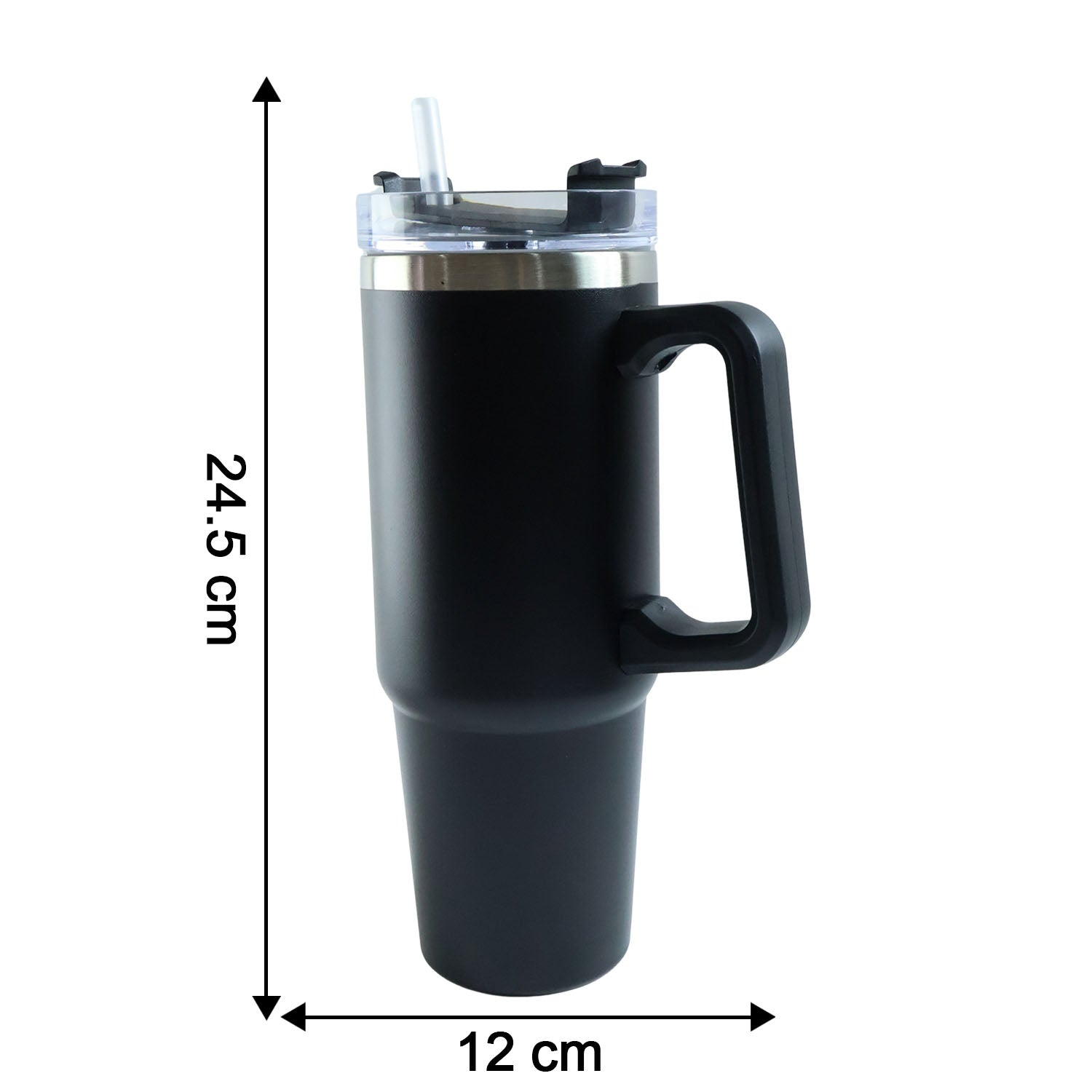 This large-capacity insulated travel mug is designed for people who enjoy their beverages at the right temperature throughout the day. Its tall, ergonomic shape with a sturdy handle offers a comfortable grip, making it easy to carry from desk to car or café. The secure lid helps reduce spills while allowing convenient sipping using the straw or direct opening. Suitable for both hot and cold drinks, this mug fits well into daily routines at home, office, or while commuting. Its sleek and modern appearance complements both professional and casual environments.